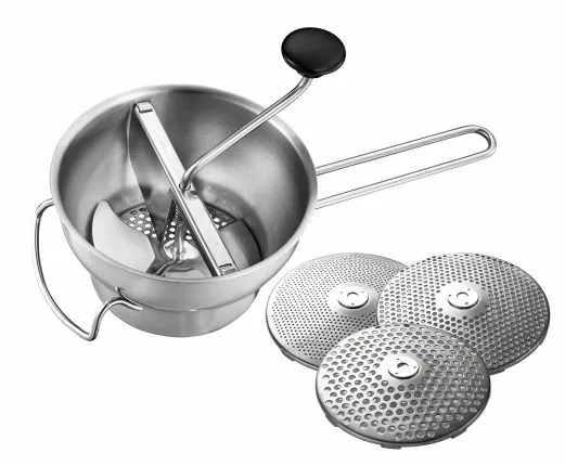 Die FLOTTE LOTTE® ist ein echter Küchenklassiker zum Passieren und Reiben von Obst und Gemüse! Von GEFU entwickelt und mit Abstreiffunktion ausgestattet, ist sie der ideale Partner, wenn feine Süppchen, frischer Babybrei oder delikate Gemüsepürees zubereitet werden sollen. Unterschiedliche, ganz einfach austauschbare Lochscheiben assistieren bei der Herstellung von Gelee & Co.