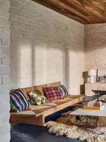 – Loungesofa mit geflochetener Sitzfläche und Rückenlehne
