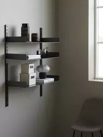 Das Wandregal verfügt über höhenverstellbare Ablageflächen.Die passende Hakenleiste und das passende Unterboden-Regal sind bei Westwing Now erhältlich und nicht im Lieferumfang enthalten.