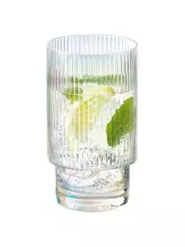 Mit unseren Wassergläsern Minna wird es auf dem Tisch im Handumdrehen glamourös! Wir lieben die Kombination aus irisierender Oberfläche und wunderschönem Rillenrelief, die jedes Getränk zu etwas Besonderem macht. Die Gläser eignen sich nicht nur perfekt als Wassergläser, sondern auch für Longdrinks oder Cocktails.