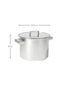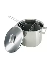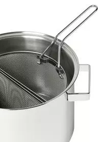 Dieses dreiteilige Koch-Set besteht aus einem Kochtopf, einem Deckel und einem Netzkorb mit Küchenzange. Der Kochtopf ist für alle Herdarten inklusive Induktion geeignet.
