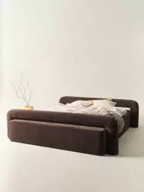 Ein einladendes Bettgestell in Luxus-Optik mit weich gepolstertem Kopf- und Fußteil. Für maximale Bequemlichkeit sind auch die Seiten weich gepolstert. Der Bettrahmen ist mit einem weichen einfarbigen Polyesterchenille bezogen, wobei die Hälfte aus recyceltem Material gewonnen wird. Der Korpus ist aus Kiefernholz und Sperrholz gefertigt. Auf den Lattenrost aus Sperrholz kannst du eine Matratze deiner Wahl legen. Matratze separat erhältlich.