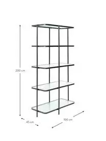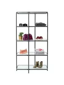 Wäre sein Design nicht so modern, könnten wir dieses Regal aus Metall und Glas glatt als Klassiker bezeichnen. Alle Funktionen stimmen: angefangen bei der Standfestigkeit und Robustheit, bis hin zu den rund 5 Metern Ablageflächen auf den massiven Glasböden. Das Stahlregal ist eine wahre Allzweckwaffe in jedem Haushalt, um aus dem schnöden Thema Aufbewahrung eine schicke Einrichtungslösung zu machen!