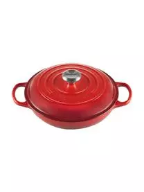 Die große und flache Form mit niedrigen Rändern eignet sich perfekt zum Anbraten von Fleisch und Gemüse, Kochen von Schmorgerichten, Braten , Backen und Karamellisieren. Der Bräter ist ein echtes Allroundtalent: geeigent für alle Herdarten inklusive Induktion und Backofen. Die Produkte von Le Creuset werden in einer Gießerei in Frankreich gefertigt.