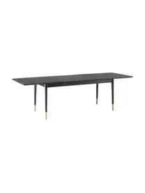 – Der Tisch kann um 40 oder um 80 cm verlängert werden, indem die beiden Tischhälften auseinandergezogen werden und die im Tisch integrierten Verlängerungsplatten in der Mitte montiert werden.