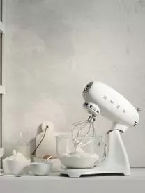 Die vollfarbigen Smeg-Küchenmaschinen im Stil der 50er Jahre sind die ideale rechte Hand in Ihrer Küche – leistungsstark, vielseitig und inspirierend zugleich. Die Küchenmaschine mit 10 Geschwindigkeitsstufen, Planet-Rührwerk und Direkt-Drive Motor gewährleistet ein sanftes, leises und perfektes Vermengen der Zutaten. Das umfangreiche Zubehör (Edelstahl-Quirl mit flexiblen Rührkanten, Schneebesen, Flachrührer, Knethaken, Spritzschutz-Einfüllhilfe, Schüssel) unterstützt Sie bei jedem Rezept.