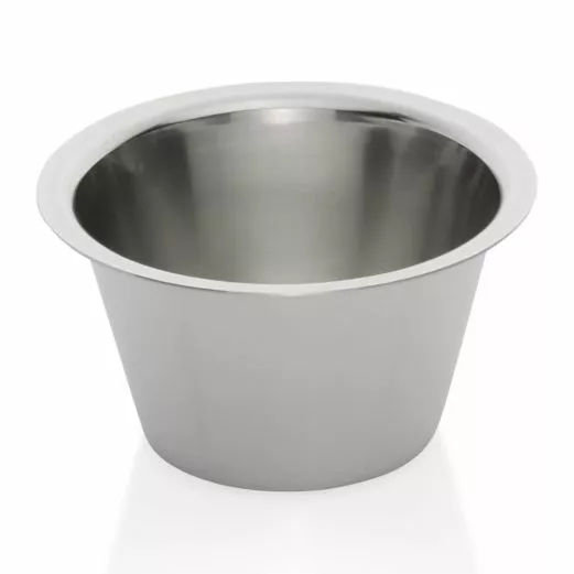 Timbalform mit bordiertem Rand aus Edelstahl.