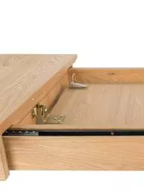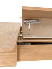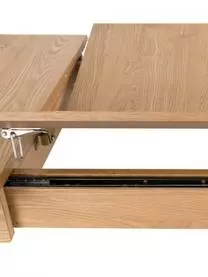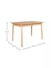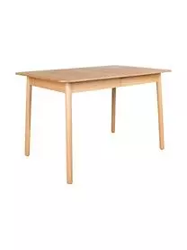 Der Tisch kann um 42 cm verlängert werden, indem man die beiden Hälften auseinander zieht und die Verlängerungsplatte aus der Tischmitte klappt. Für 4 Personen ohne Verlängerung und für 6 Personen mit Verlängerung geeignet.