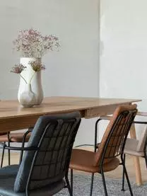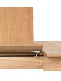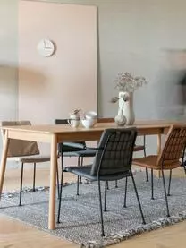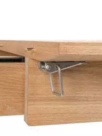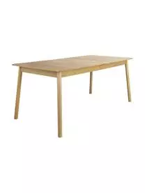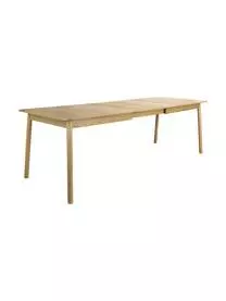 Der Tisch kann um 60 cm verlängert werden, indem man die beiden Hälften auseinander zieht und die Verlängerungsplatte aus der Tischmitte klappt. Für 6 Personen ohne Verlängerung und für 10 Personen mit Verlängerung geeignet.
