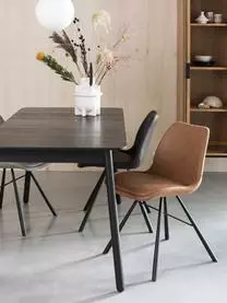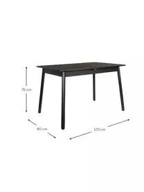 Der Tisch kann um 42 cm verlängert werden, indem man die beiden Hälften auseinander zieht und die Verlängerungsplatte aus der Tischmitte klappt. Für 4 Personen ohne Verlängerung und für 6 Personen mit Verlängerung geeignet.