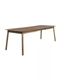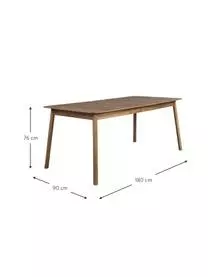 Der Tisch kann um 60 cm verlängert werden, indem man die beiden Hälften auseinander zieht und die Verlängerungsplatte aus der Tischmitte klappt. Für 6 Personen ohne Verlängerung und für 10 Personen mit Verlängerung geeignet.