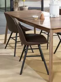 Tischplatte: Mitteldichte Holzfaserplatte (MDF) mit Walnussfurnier, lackiert